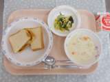 今日の献立は、 ・牛乳 ・麦ごはん ★鶏肉のチーズ焼き ・コーンと卵のスープ ...