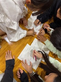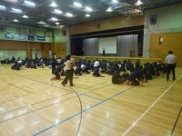全校が体育館にいるときに地震が発生した想定の訓練を実施しました。各自が自分の頭を...