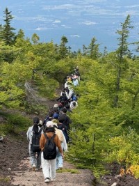予定より10分早く宿舎を出発して、富士山5合目に向かっています。写真は、富士山と...