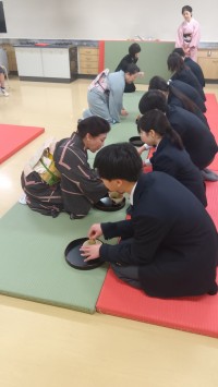 日本文化体験として、3年生の茶道教室がありました。茶道の道具、お茶菓子など、ふれるのが初めてという生徒もいたのではないでしょうか?普段と違う所作を学べる とても よい経験になったと思います。