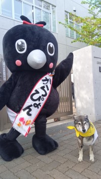 新たな1週間の始まりです。なんと 小学校の校門に からぴょんが挨拶にきていました...