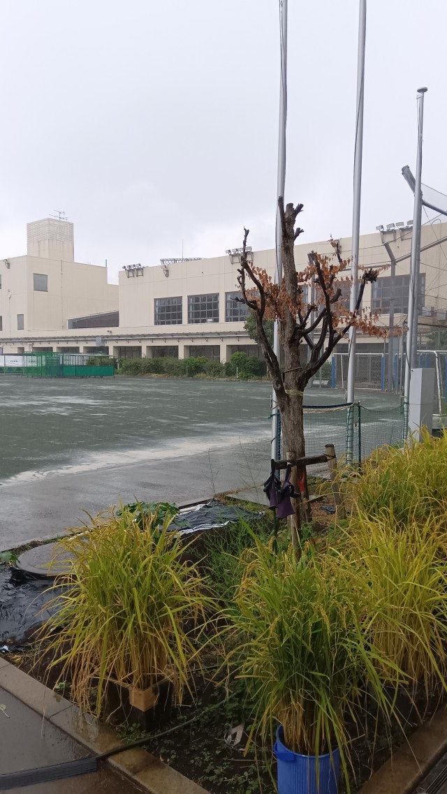 9月4日、雨☔。登校時、昼頃、激しく降りました。恵みの雨のはずですが あまり降ると困りものです。下校時は、降りませんように。