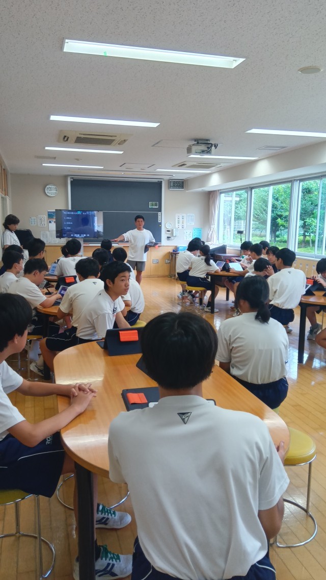 1年生は3分の2くらいの生徒がTシャツや短パンなど暑さ対策を考えた服装で過ごしています。3年生は受験を意識しているのか、多くの生徒が制服を選択していました。I組はプールがあるので体操着で過ごしています。2年性は木曜日まで職場体験中です。