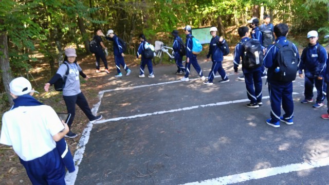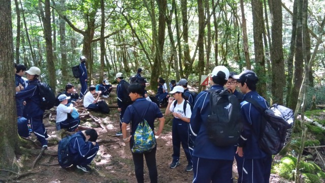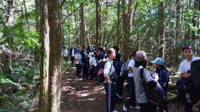 「こうもり穴」から「野鳥の森」まで樹海の中をハイキングしました。神秘的な樹海の景色を楽しみながら歩きました。