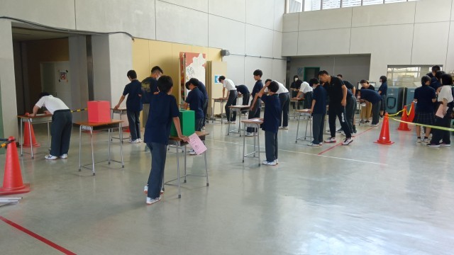 3年生は、次の芦花中を託すために、1、2年生は、自分たちの芦花中を築いていくために、真剣に演説を聴いて投票していました。