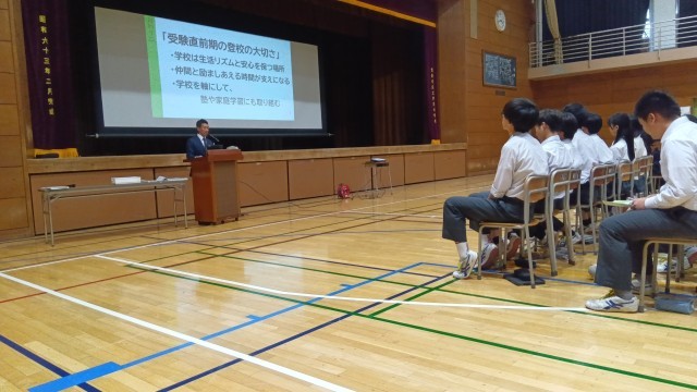 3年生のリハーサルの後には、同じく体育館にて保護者も交えた第2回進路説明会を実施しました。