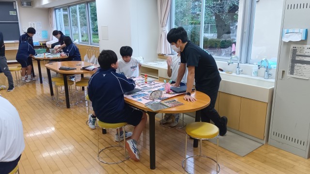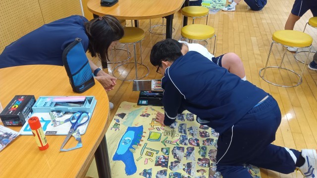 5校時 I組、河口湖壁新聞作成中。完成間近。楽しかった思い出がたくさんつまってます。