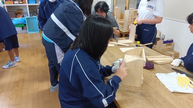 久々に晴れて 気持ちのよい朝。校内に トントンと軽快な音が響いてます。1校時から I組.技術、棚を作成中です。
