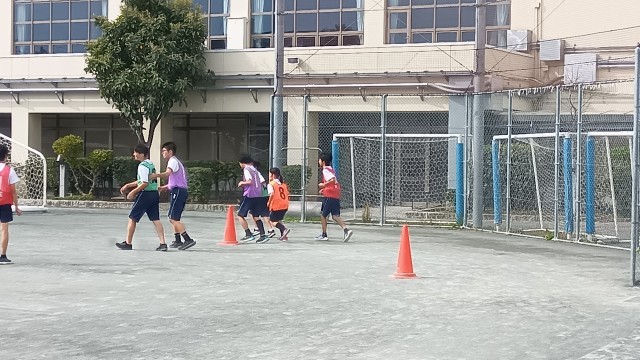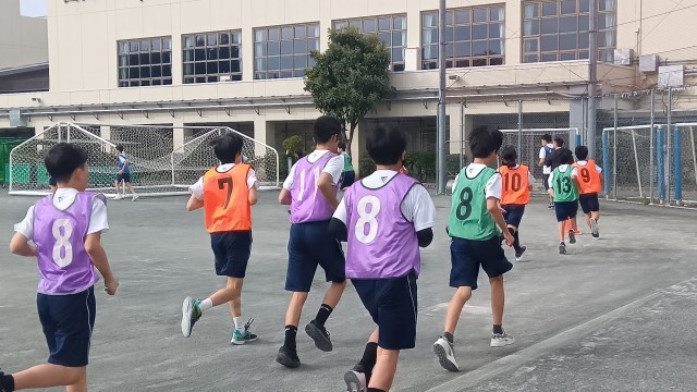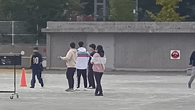 2校時目、I組マラソン大会へ向けて練習。今日は、実際の距離を走り、タイムを測ってます。遅くなった友達と 終わった生徒達が一緒に走ってあげたり とても ほほえましい様子もみられました。タイムを測る先生達も真剣です。