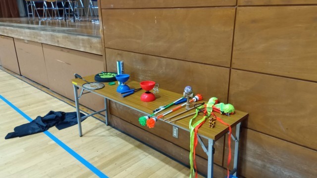 14時30分から体育館で「出張児童館」開催中。いろいろな 遊び道具を持ってきてくれています。明るい、元気な声が響いてます。