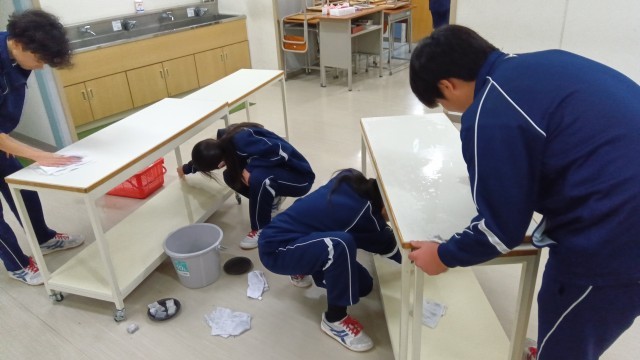 普段から用務主事の皆さんがきれいにしてくれていますが、人手が多くないとできない作業など、一生懸命取り組んでいました。