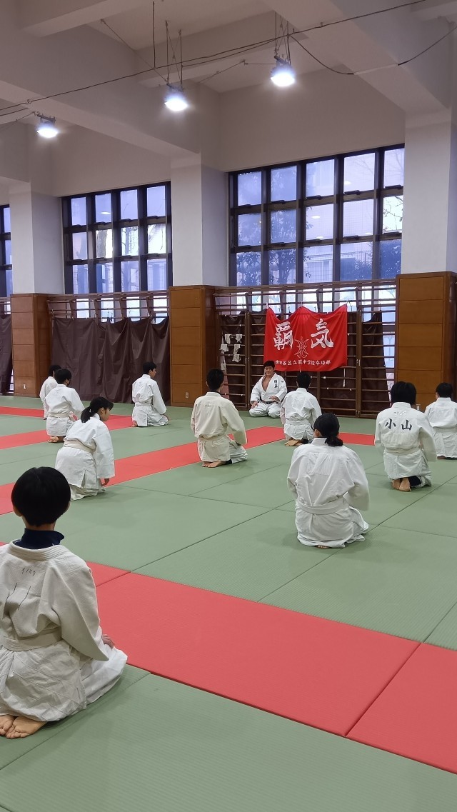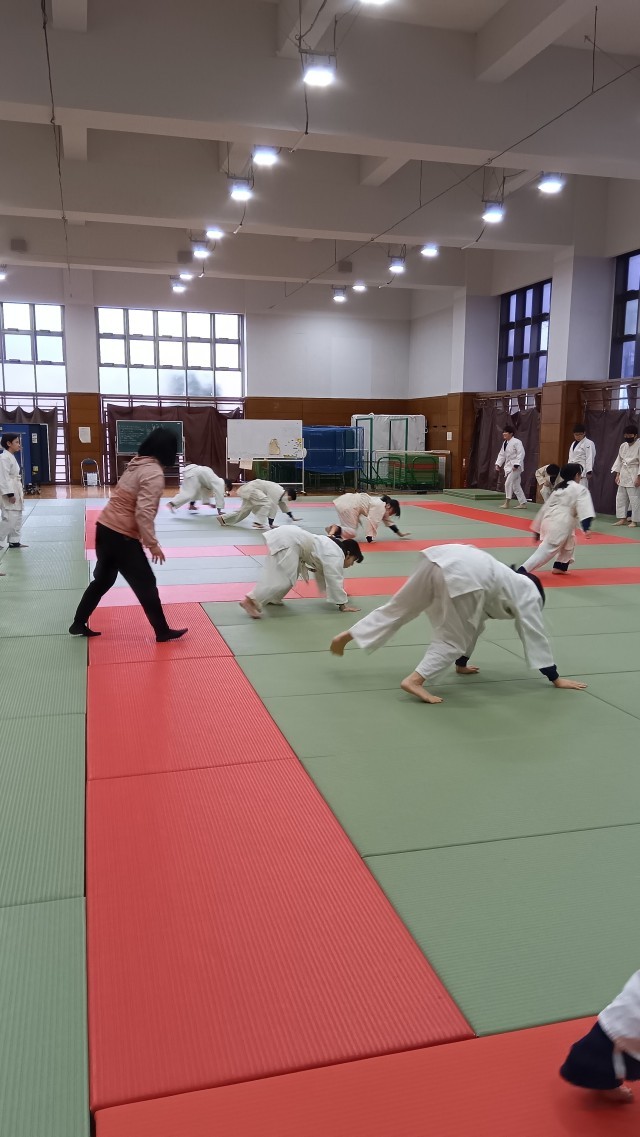 2校時、I組体育、柔道。柔道着姿も さまになってきました。挨拶も 正座をし、しっかりと声が出てます。