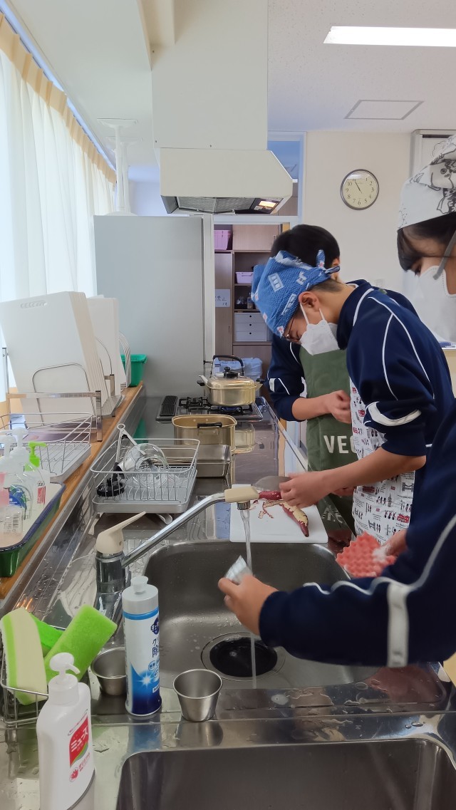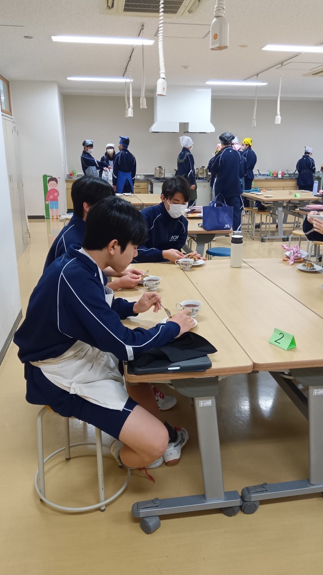 2年生、家庭科、調理実習。蒸しパンと紅茶。さつまいもの入った蒸しパン。お芋を切るのに苦戦している班もありましたが、出来上がりは上出来。家庭科室は、いいにおいです。