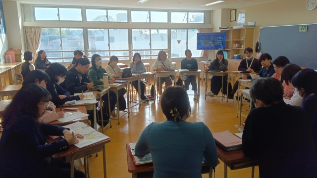 本日は、小中合同研究会(学び舎の日)として、芦花小中学校の先生が一緒に情報共有や教育課題について話し合いを行う日でした。
