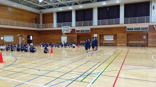 卒業前の思い出づくりとして、3年生体育委員会主催の球技大会を開催しました。バレーボール、ハンドボール、オタマリレーなど、みんなで楽しみました。