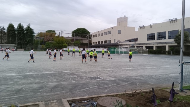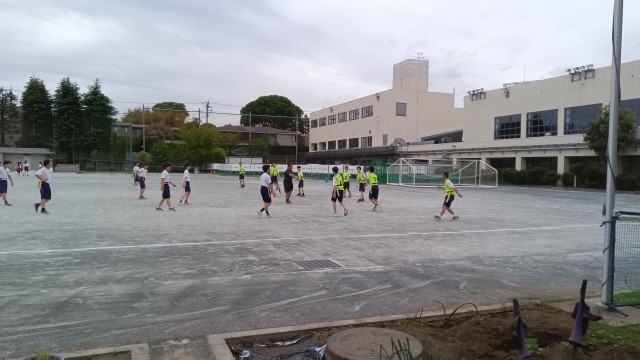 3年生、体育の授業。ラグビー。楕円のボール、見たことはあるけど 触ったことはない生徒もいたのではないでしょうか?どこに飛ぶか分からないボールを 楽しそうに追いかけています。