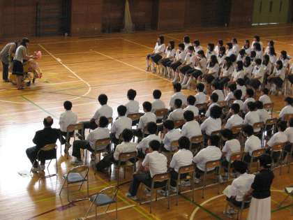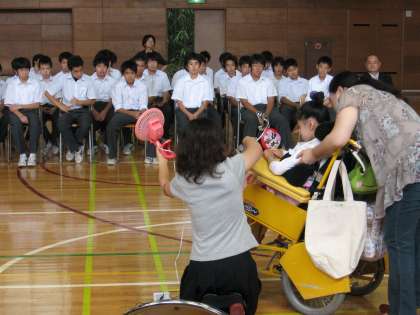 7月3日(金)の6校時体育館で「ハンディキャップをもつ生徒との交流を通して、人と関わる力を養う」ことを目的に交流会を実施しました。