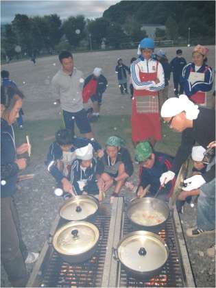 2日目の昼は、バター作りやカレー作りをして自然の中を元気に活動しました(写真3枚目)