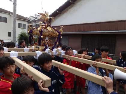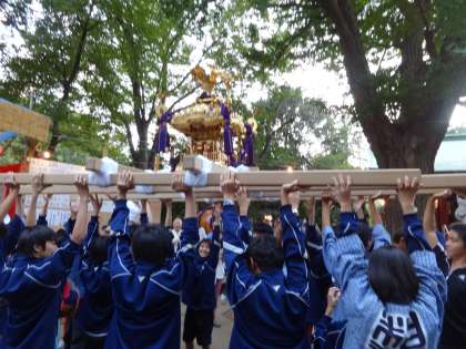 参加した生徒たちは、元気よく声を出し、重い・軽いなどと良いながらも楽しそうに神輿を担いでいました。