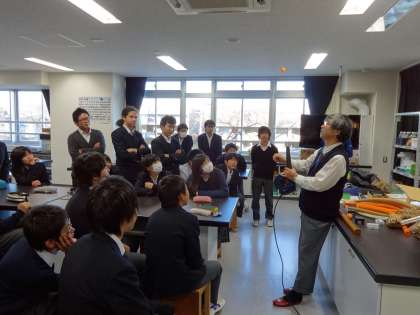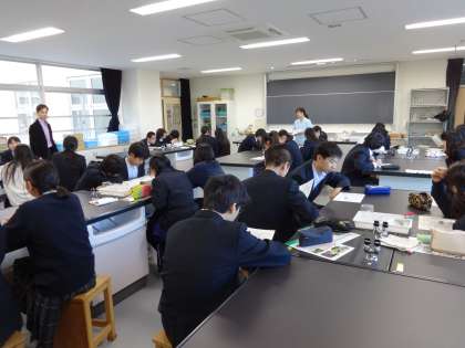 個性あふれる授業を目を輝かせながら受けており、実験や会話を通して高校のおもしろさを体験できたと思います。