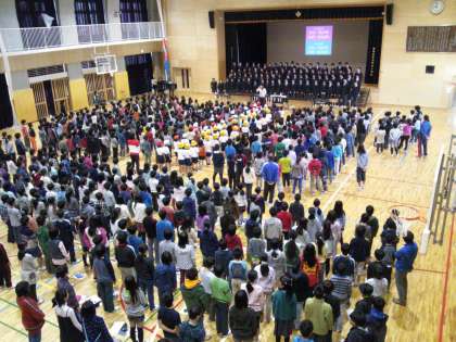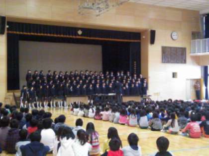 小学生の元気のよい歌声に負けじと、中学3年生はきれいなハーモニーを披露し、小中での交流を深められたと思います。