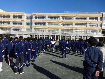 12月14日の寒空の下、1・2年生が学校の周りでマラソン大会を行いました。