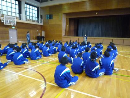 24日(月)大掃除後、1年はミィーティングルームで、2年は体育館で、今年度最後の学年集会が開催されました。今年度の取り組みの良かった点とそして、来年度に向けての目標の確認が行われました。学年の先生からも励ましの話があり、生徒は真剣に耳を傾けて聞いていました。