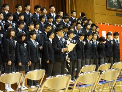 卒業証書授与を終え、送ることば、別れのことばへと式が進行し、卒業生が歌い始めたとき、ひとり、またひとりと涙を流し鼻をすする音が聞こえてきました。