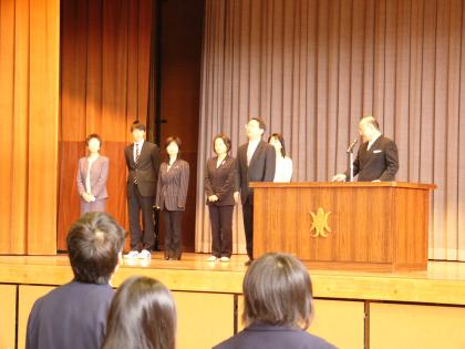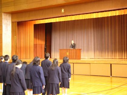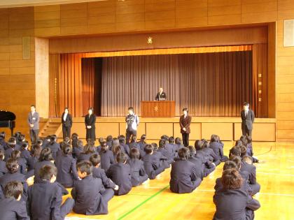 4月7日(月)いよいよ初日。朝登校して、新2学年、新3学年のクラス発表が掲載された学年通信をもらい新しい教室へ。その後、新しく芦花中学校に着任した6名の先生方の着任式がありました。続いて始業式では、進級した心構えの話が校長よりあり、新しいクラスの担任が紹介されました。いよいよ明日は新1年生を迎えます。