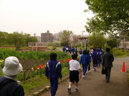 4月16日(水)春爛漫の気候の中、新しい班で、蘆花恒春園まで散策に行ってきました。班長を中心に、一年生も混じって交通安全に気を配りながらきちんと列を作って歩きました。公園では鬼ごっこをしたり、花壇で記念撮影をしたり、資料館を見学しました。学校名の由来になった徳富蘆花を知ることが出来ました。