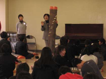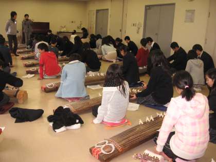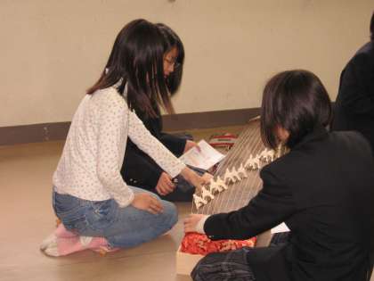 11月24日(火)4校時、6校時、小学生と中学生が一緒にお箏に向かいました。
