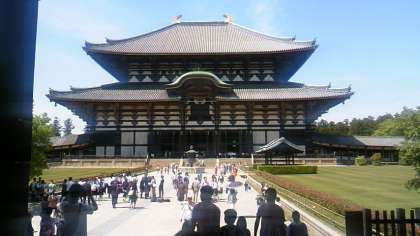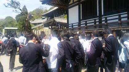 お昼前に奈良に到着。昼食をすませた後、奈良公園内を班で行動しました。東大寺の二月堂、三月堂や大仏殿も見学しました。