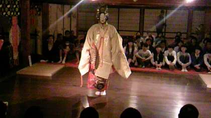 夜は高台寺で能楽鑑賞です。無形文化遺産の「能」を間近で鑑賞できて、とても貴重な体験でした。ライトアップされたお庭も、とてもきれいでした。