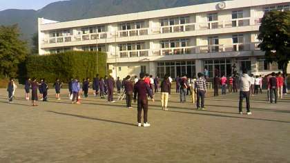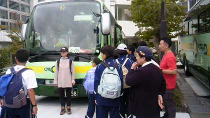 全員元気に2日目の朝を迎えました。今朝も学園から富士山がよく見えます。園庭で朝礼、ラジオ体操を行いました。今日はコウモリ穴と野鳥の森に散策に出かけます。