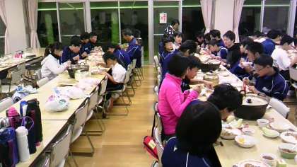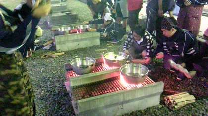 夕方はカレー作りに挑戦しました。班ごとにみんなで協力して作ったカレーの味は最高です。全員でおいしくいただきました。