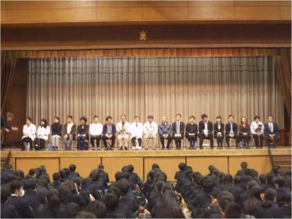 この日は、19名の講師の方をお招きし、それぞれ職業の仕事についてや大変さ、やりがいなどを、教室に分かれてお話していただきました。