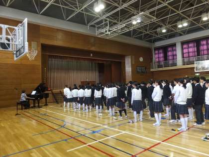 講話の最後に、内藤先生は生徒たちにこの群青を合唱することを提案しました。生徒たちは、改めてその歌詞の尊さを噛みしめるように一生懸命歌っている様子でした。誰かを思いやる気持ちの大切さをこの曲は教えてくれます。この先何かつらい事があったとき、この曲を聞いて誰かを思う気持ちの大切さを思い出してほしいと思います。