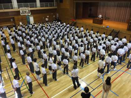 9月1日に始業式が行われました。長い夏休みが終わり、いよいよ2学期のスタートです。始業式では、校長先生からリオデジャネイロオリンピックの日本の選手たちの活躍についてのお話がありました。日ごろの努力が実を結び、過去最高の41個のメダルを獲得した今回のオリンピックは、生徒たちにも大きな影響を与えたことでしょう。