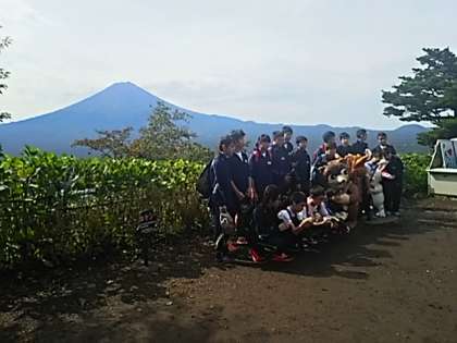 学園を出発し、天上山にロープウェイで登りました。富士山がきれいに見えます。その後、野鳥の森を散策し、ゴールの広場で昼食です。