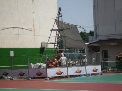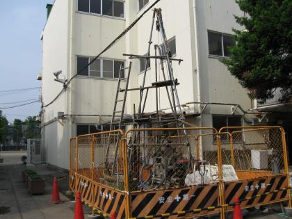夏休みに入り梅雨もあけ、猛暑の夏がやってきました。芦花中では、次年度から始まる校舎改築に向け校庭、竹やぶ、テニスコートと、あちこちで地質調査を行っています。
