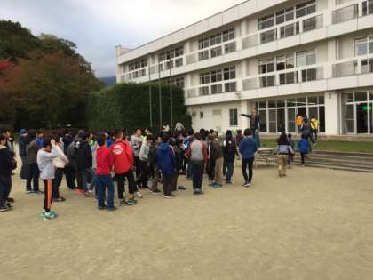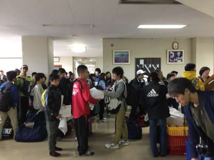 開園式が終わった直後と整美委員がシーツを持ち、これから部屋に向かうところの生徒たちの写真です。