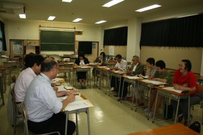 7月18日の午後、今年度の学校関係者評価委員(前年度名称は外部評価委員)さん8人と学校評議員さん4人(内出席2人)の会合を持ちました。