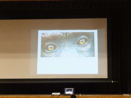 大野先生は、まず動物の目と人間の「目」の違いについてお話してくれました。その違いをご存知ですか?実は、その違いは「白目」なのです。人間の目には、白目があります。一方の動物たちは、黒目しかありません。それは彼らの行く先を敵に知られないためであるとも言われています。私たち人間は古く昔から、白目を使い、他者、さらには集団とかかわりを持って生きてきました。そしていまのわたしたちも同様に、集団の中でこそ、生きていけるものなのです。