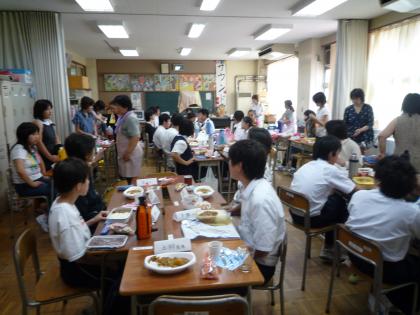 7月31日(木)夏の水泳教室が終わって、お昼にカレーパーティーとお楽しみ会が行われました。カレーは午前中に保護者の方々が調理室でおいしく煮込んで作ってくださったものです。隠し味はそれぞれの家伝の秘密をご披露していただき大変おいしかったです。食事の後はミーティングルームでみんなでハンカチ落としゲームなどをして楽しみました。ご家族で兄弟姉妹も集まってとても楽しい会になりました。