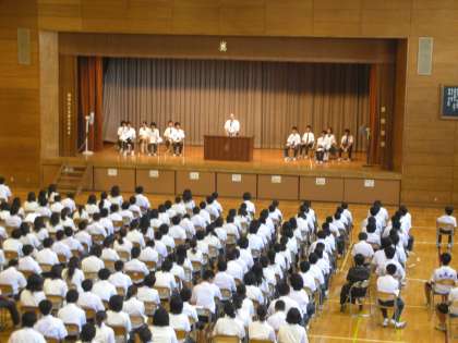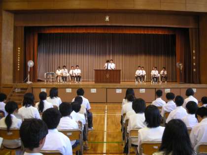 とても暑かった体育館の中で、どの学年も真剣に候補者の演説を聞くことができました。