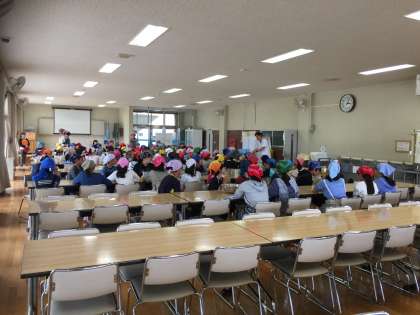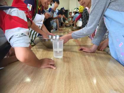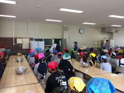 緑の休暇村から生徒達は全員無事戻り、今はうどん作りです。