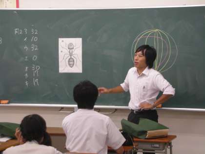 9月9日の5時間目と6時間目に、東京都立松原高等学校の北野賢一先生による理科の授業が3年生を対象に実施されました。仮説実験授業で、テーマは「見れども見えず」でした。生徒たちは、自分の日頃接しているものを、いかに不確かに把握しているかが分かったようです。楽しく集中した授業を通して、「予想をもって問いかける」学習の大切さを学んだようです。