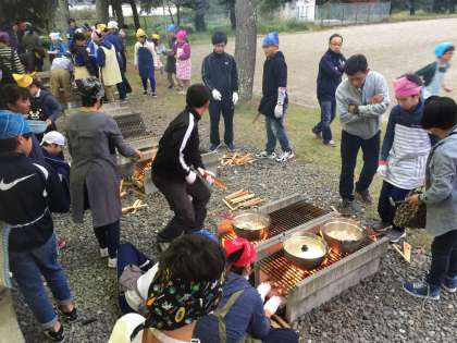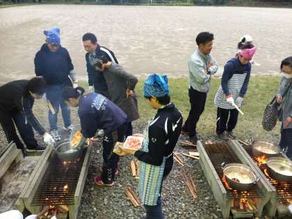 野外でカレーを作っています。