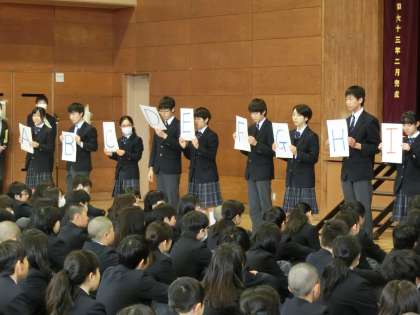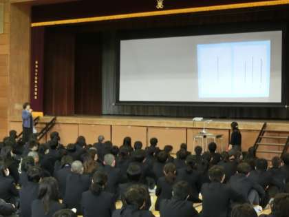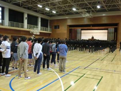 3月5日(月)に人格の完成の講話が行われました。今月のテーマは「自立」です。この日は小学6年生も中学校の朝礼に参加し、一緒にお話を聞きました。