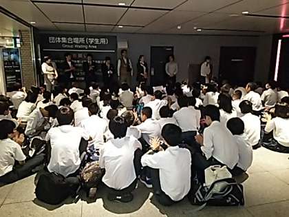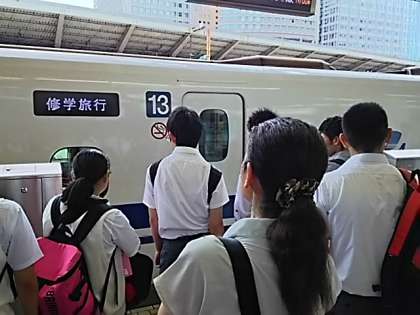 集合時刻前に全員集合完了しました。出発式を行い、新幹線に乗車します。いよいよ修学旅行がスタートします。